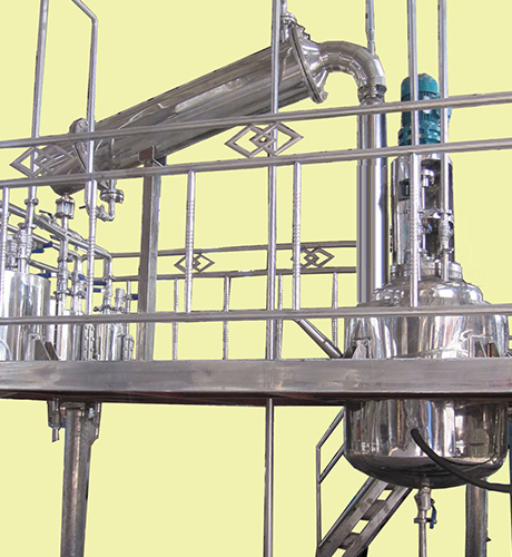 1、反應(yīng)鍋2、豎式冷凝器3、豎式冷凝器4、臥式冷凝器5、貯水器